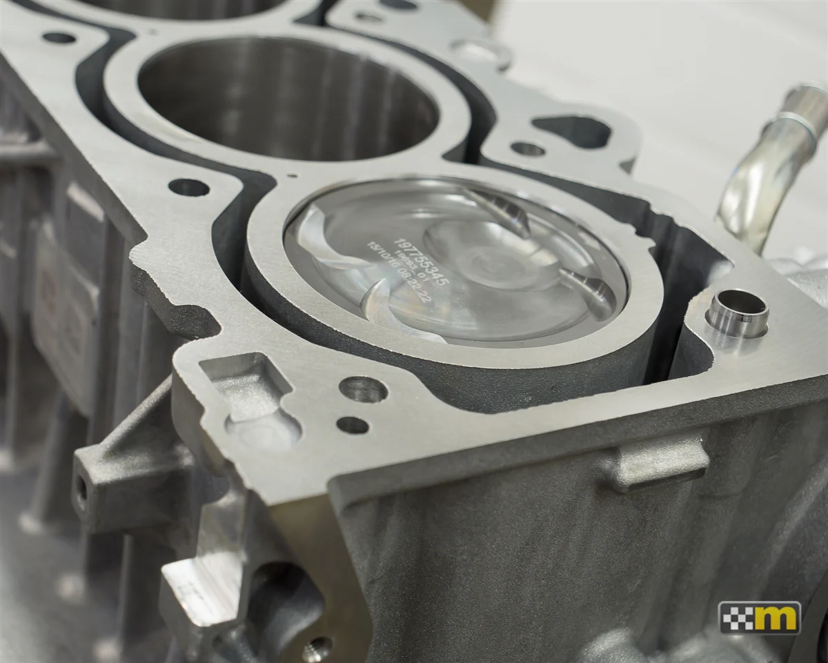Each short block starts off as a brand new aluminum Ford Focus RS open deck engine block which can be strengthened with the Cylinder Support System before being skillfully assembled with mountune forged pistons, forged h-beam connecting rods, tri-metal racing bearings, and a balanced forged crankshaft. We also highly recommend our baffled oil control system for maximum performance and reliability